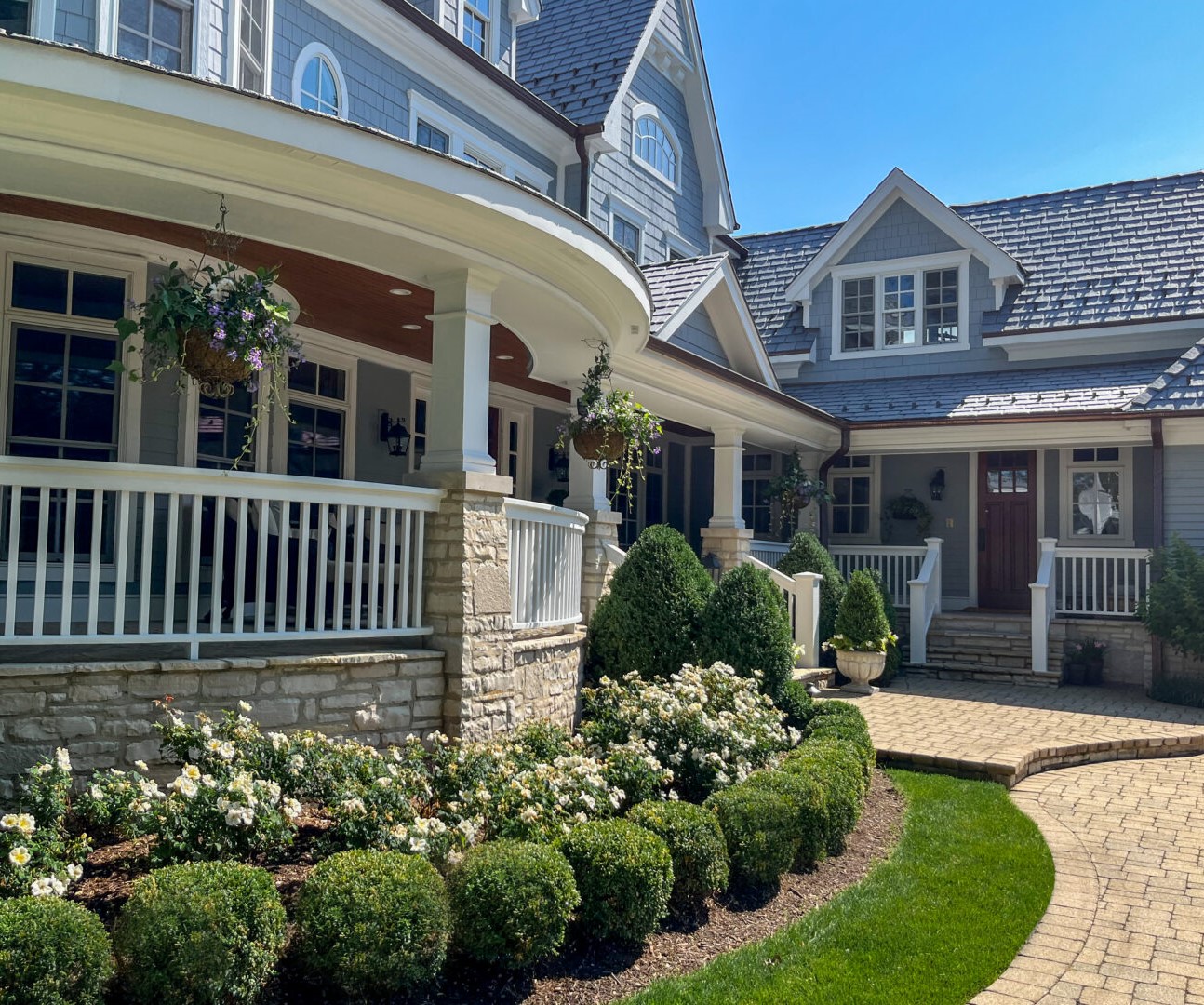 Nearly 20 years ago, our firm transformed the basic builder landscape of this property into a classic, East Coast-inspired retreat, adding character to the home and making the outside space integral to the family's lifestyle. Our comprehensive redesign laid the foundation for a space that resonated deeply with the clients, making it a cherished place for family moments. This legacy inspired their daughter to choose the property for her wedding, prompting updates to refresh the landscape. We enhanced the existing design with new plantings, including white roses and boxwood hedges, and reconstructed a bluestone patio that seamlessly connected to the home’s architecture. Despite a tight timeline and access challenges, the revitalized landscape embodied the client’s vision of elegance and timelessness. The updated project perfectly balanced event readiness with long-term enjoyment. Having maintained this landscape since its original redesign, we are proud to contribute to the property's enduring beauty.